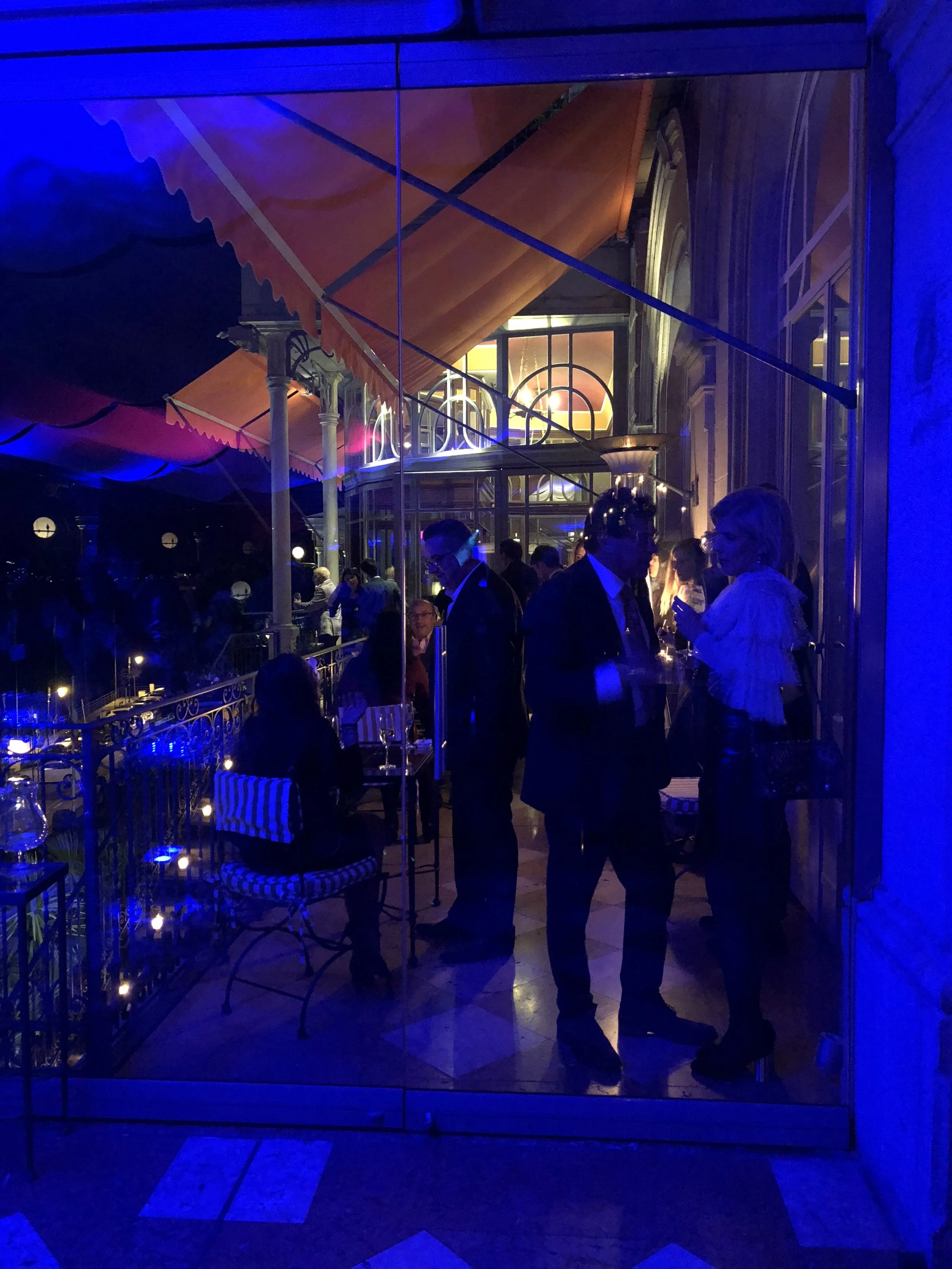 The cocktail party/dinner on this night was hosted for us at the famed Grand Hotel Tremezzo in Tremezzina on Lago di Como. The hotel was lit up for our arrival and the entire night was a kalidescope of luxury, colors, sounds, tastes and fun!